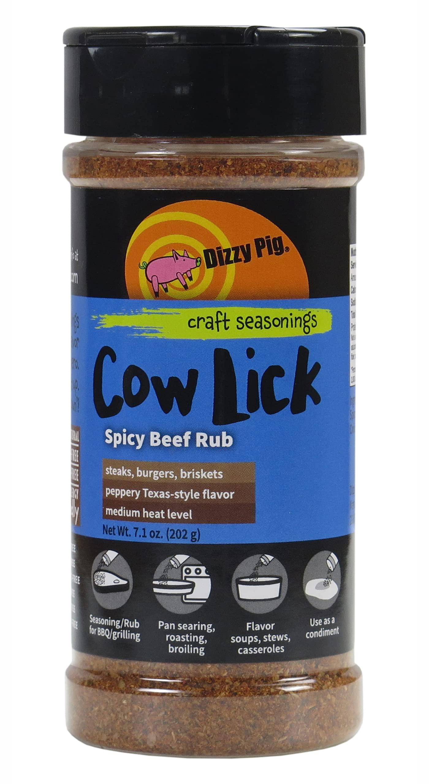 - Cow Lick Spicy Beef Rub, the now-famous, Texas style rub makes everything beef pop right off the plate, grill or pan.