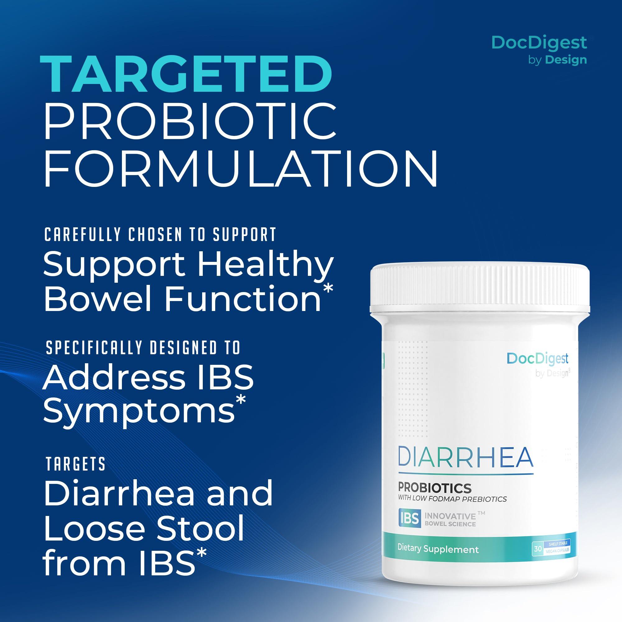 - Targeted Probiotic Blend: These anti diarrhea pills contain specific probiotic strains well-suited to support healthy bowel function and decrease diarrhea associated with IBS, travelers' diarrhea, and other digestive issues.