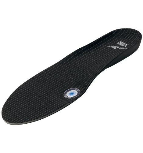 The DonJoy Arch Rival orthotic inserts are a patented pre-fabricated orthotic designed to treat Subtle Cavus Foot (SCF) which is characterized by higher arches and heel varus. These orthotics help promote natural foot function which includes improving stability, adding shock absorption and alleviating pain. The recessed area under the 1st metatarsal head accommodates the plantar-flexed 1st ray and allows hindfoot eversion, unlocking the subtalar joint. The elevated heel works to cushion heel strike force and tight calf musculature. The DonJoy Arch Rival orthotic inserts are manufactured with X-Static Technology, an anti-odor, thermodynamic material which actively eliminates odors. Silver-coated fibers woven into the surface layer helps distribute heat throughout the orthosis which decreases friction, hotspots and helps prevent blisters and odor. The DonJoy Arch Rival orthotic inserts are intended to fit most athletic and walking shoes. Because of the wide range of shoe styles, these orthotics are designed with excess material length-wise, allowing them to be trimmed at the toe area for a custom fit. Simply place your foot on the insert to ensure the ball of your foot is properly aligned to the recessed circle before cutting. Includes 1 complete pair of orthotic inserts (1 left foot and 1 right foot).