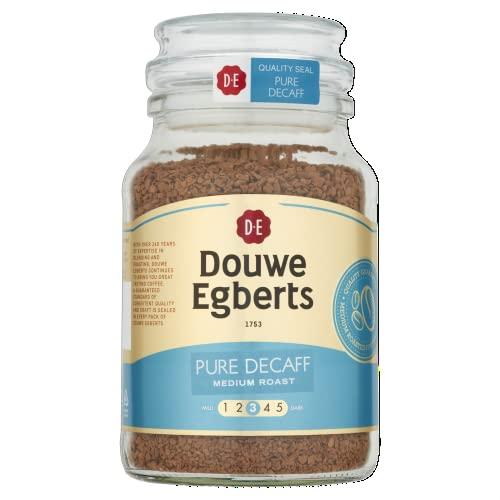 Freeze-Dried Instant Coffee in Glass Jar. Net 6.7oz/190g Douwe Egberts Pure Decaff is a decaffeinated instant coffee made from an expert blend of the finest quality Arabica and Robusta coffee beans. Its well-balanced and aromatic flavour make it the perfect cup of coffee without the caffeine kick. Experience the smooth taste of Pure Decaff instant coffee. Medium Roast Strength Level: Medium, 3 out of 5 Decaffeinated - Contains between 0.0-0.3% caffeine. Imported from Europe