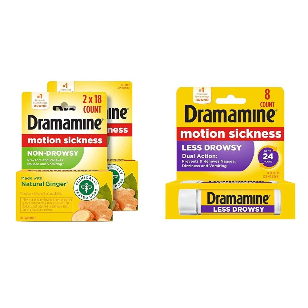 - Product 2: Dramamine is the number 1 pharmacist-recommended brand*; *Named by Pharmacy Times and U.S. News & World Report as number 1 Pharmacist-Recommended Brand for 2022 Motion Sickness Remedies Category