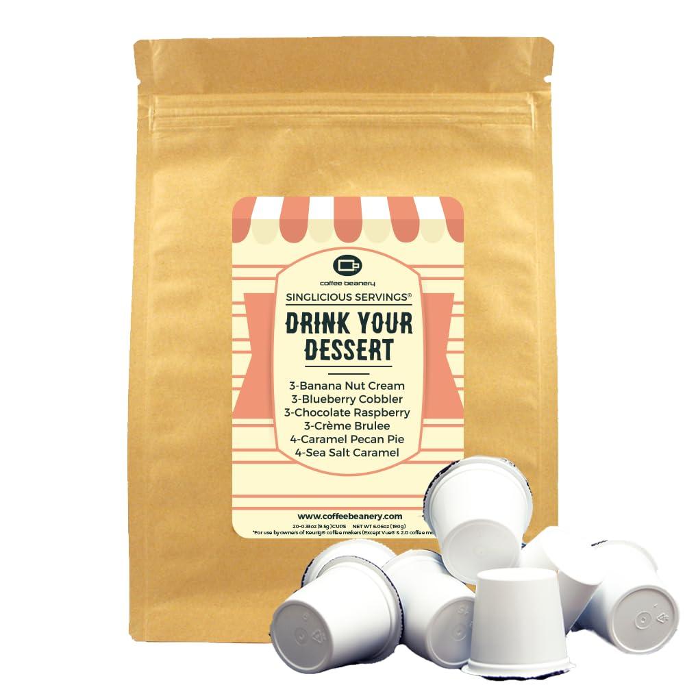 - Satisfy your sweet tooth with the Drink Your Dessert Flavored Coffee Pod Variety Pack! This 20-pack offers a decadent selection of dessert-inspired coffee pods, combining the rich taste of coffee with indulgent flavors that mimic your favorite desserts. From creamy vanilla and smooth caramel to indulgent chocolate and sweet cinnamon, each cup delivers a guilt-free treat thats perfect for any time of day.
