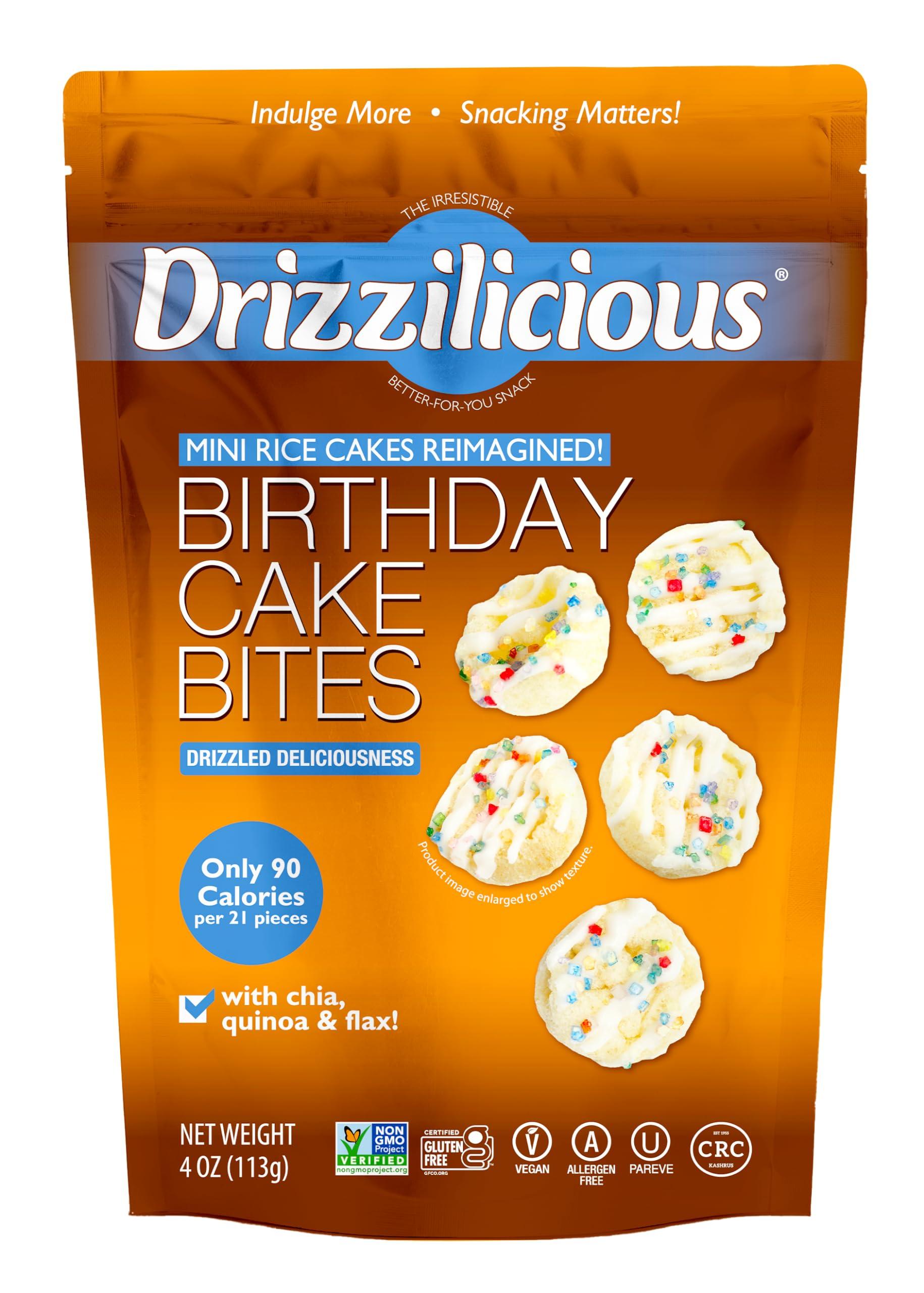 - BIRTHDAY CAKE - Our delectable Birthday Cake rice cakes are made with healthy, plant-based ingredients like quinoa, chia, and flaxseed! Popped to perfection and drizzled in white chocolate sauce