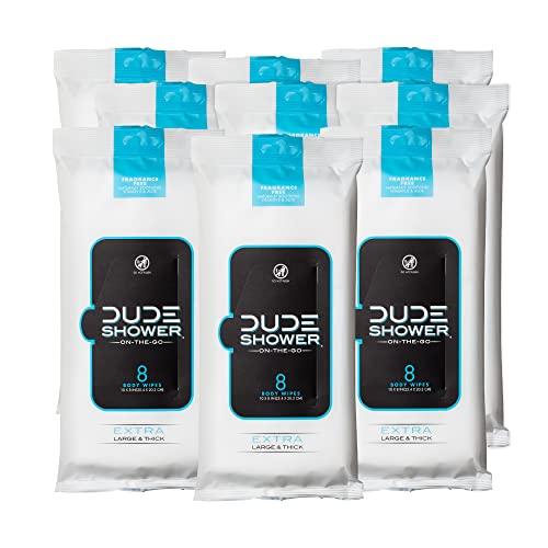 Dude DUDE Wipes On-The-Go Shower Wipes - 9 Pack, 72 Wipes - Unscented Extra-Large Wipes with Vitamin E & Aloe - Full Body Shower Replacement Wipes