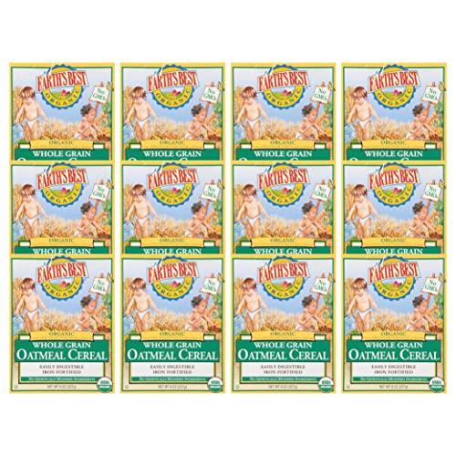 - ORGANIC OATMEAL CEREAL: Includes twelve 8 oz boxes of Earth's Best Organic Infant Cereal