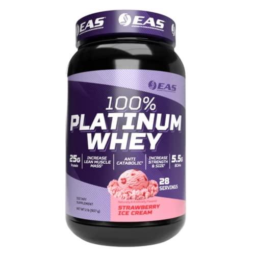 EAS EAS 100% Platinum Whey Protein | 3 Ultra-Platinum Whey Proteins | Increase Size & Strength | 25g Protein, 5.5g BCAAs | 2 Pound (Strawberry Ice Cream)