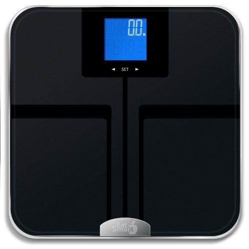 The Eat Smart Precision Get Fit is an advanced bathroom scale for individuals who are serious about controlling their health. This scale can measure weight, body fat, body water, body muscle, and bone mass using BIA technology (bio-electrical impedance analysis), which allows you to quickly calculate your body fitness by inputting information on gender, height, age, and activity level. This technology sends a low-level, harmless electrical signal through your body and then measures the resistance, translated to a percentage. The sleek design uses invisible electrode material to transmit the signal versus the stainless steel on other scales. The Precision Get Fit scale stores up to 8 different users' profiles and uses auto-recognition technology to recognize these users as soon as they step onto the scale. Just stand on the platform barefoot, and the user is identified based on past weight. It measures up to 400 lbs and is accurate to the nearest .2 lbs. The touchscreen interface makes it one of the most user-friendly bathroom scales on the market today. Please contact us for help or troubleshooting your scale.
