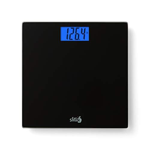 The Eat Smart Precision Choice Bathroom Scale is the ideal way to track your weight loss quickly and easily. Eat Smart's proprietary "Step On" technology allows you to step onto the scale. In seconds, you'll have an accurate readout to the nearest 2 lbs. on Eat Smart's 3. 5-inch Diagonal LCD Display with Blue Backlight. No more "waking up" your scale by tapping or pressing buttons! The LCD also contains a cool-blue backlight, allowing for easy viewing even in the most dimly lit areas of the bathroom or home. The Eat Smart Precision Choice is also easy to use, affordable, highly accurate, and engineered to the highest precision standards. The four high-gauge Eat Smart precision G sensors ensure you will get an accurate measurement every time. Additionally, the slim ergonomic design fits perfectly into any surroundings, and the tempered safety glass platform safely allows weights of up to 400 pounds. Along with your Eat Smart digital scale, you also receive our easy instruction guide and 3 AAA batteries. Stop guessing your weight and get serious about your weight loss and fitness goals. Get yours today!