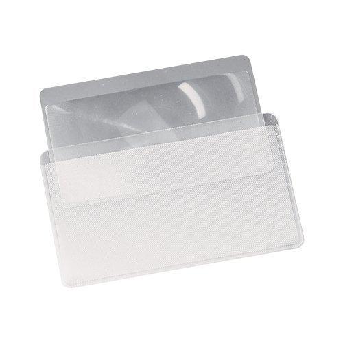 eBuyGB lightweight, Fresnel, compact, reading aid at a ideal size of 55 x 85 mm which is the same size as the credit card, to easily fit into a wallet, purse, pocket, or bag. Made out of PVC it is quite a flexible product which does not easily break. It easily magnifies small text for extra help when reading and comes with a plastic wallet to protect the lens. Wallet is 94 x 61 mm