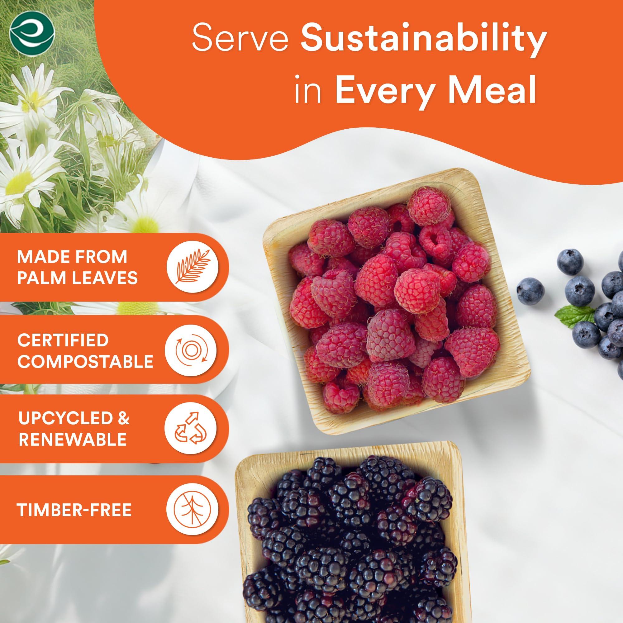- 100% BIO-BASED AND COMPOSTABLE: Our biodegradable palm leaf bowls are 100% bio-based and natural, free of chemicals or BPA. These plates make for easy clean-up after parties or BBQs.You can dispose of them guilt-free as they are 100% compostable, saving you time from doing dishes. Our plates are made from naturally fallen palm leaves and we do not cut any trees for their manufacturing.ECO SOUL palm leaf bowls are proud to have USDA BioPreferred certification.