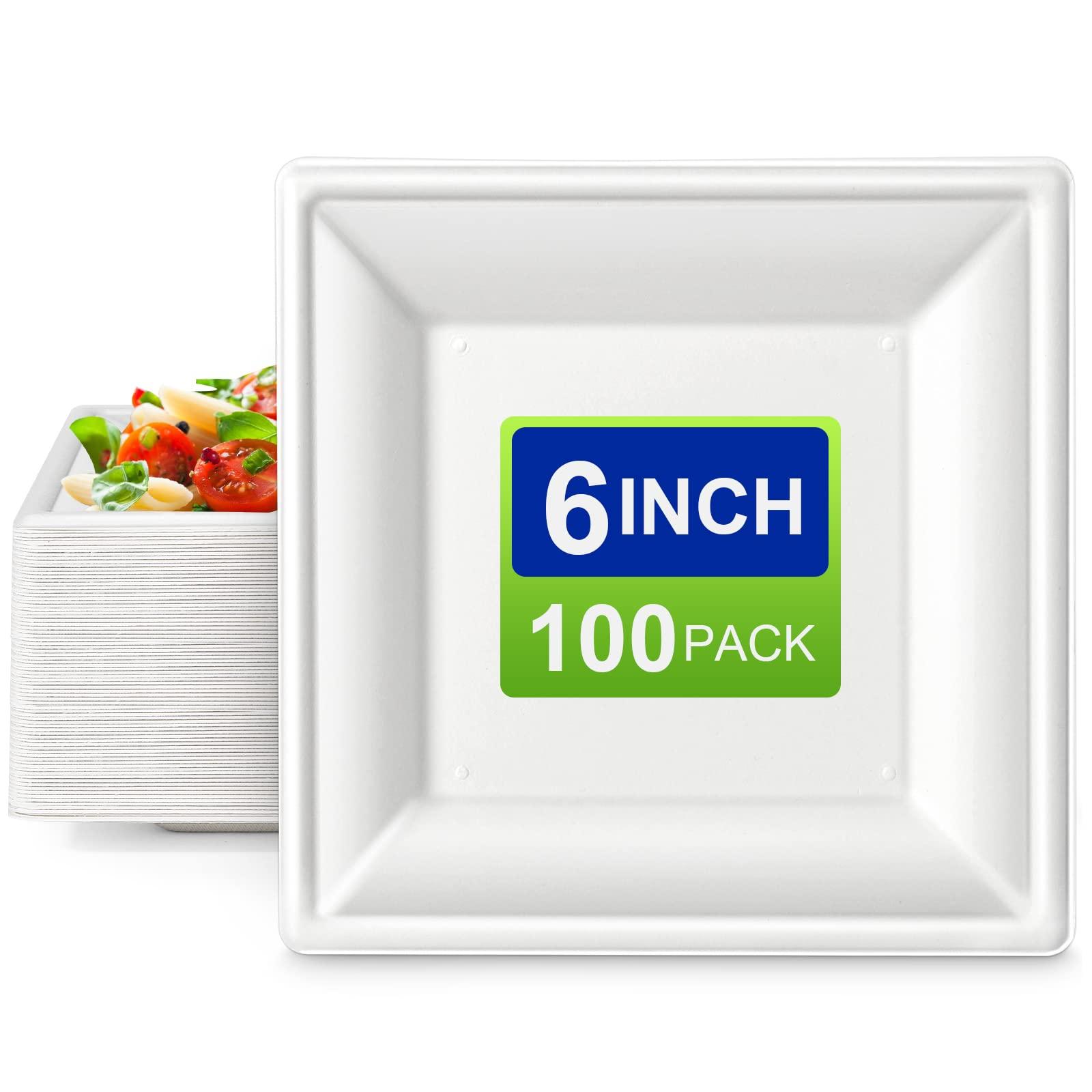 - 6 inch Paper Plates: Measuring 6 inches each, these square plates are perfect for serving hamburgers, salads, pasta, baked beans, desserts and more.