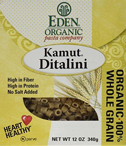 Organically Grown- Double Certified Authentically Organic High in Fiber High in Protein No Salt Added Heart Healthy* Kosher Parve 100% Whole Grain OCIA Certified Organic Kamut Ditalini Kamut, an ancient grain revived, is a family farm organically grown on the high plains of Montana and freshly milled at Eden. Many with sensitivity to modern wheat can enjoy kamut because of its highly water soluble gluten. Ditalini, meaning small tubes, is great in soup and salads. What a gem we have in the Eden Organic Pasta Company. A Detroit landmark crafting pasta in small batches since 1923, it still has the original Italian fixtures like artisan brass dies, noodle rollers, and macaroni dryers. Best of all are its people who care. Eden selection, meticulous tracking and audited records guarantee the purity of this food from farm to your table. *Diets rich in whole grain foods and other plant foods and low in total fat, saturated fat and cholesterol may reduce the risk of heart disease and some cancers.