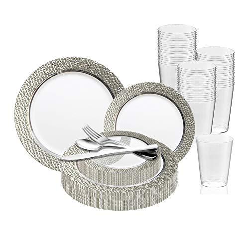 - DESIGNED FOR ALL EVENTS & OCCASIONS: When it comes to any celebration, we want only the best for our guests. With this Deluxe Hammered Wedding Dinnerware Set, you can easily add a touch of elegance to your party decorations. They're perfect for Banquets, Anniversaries, Wedding Reception, Engagements, Birthday, Baby Showers, Housewarming, Christmas & Thanksgiving Parties. They are also ideal for Fourth of July, Easter, Holiday Events, Corporate Gathering, Upscale Catering and Home Dinner.
