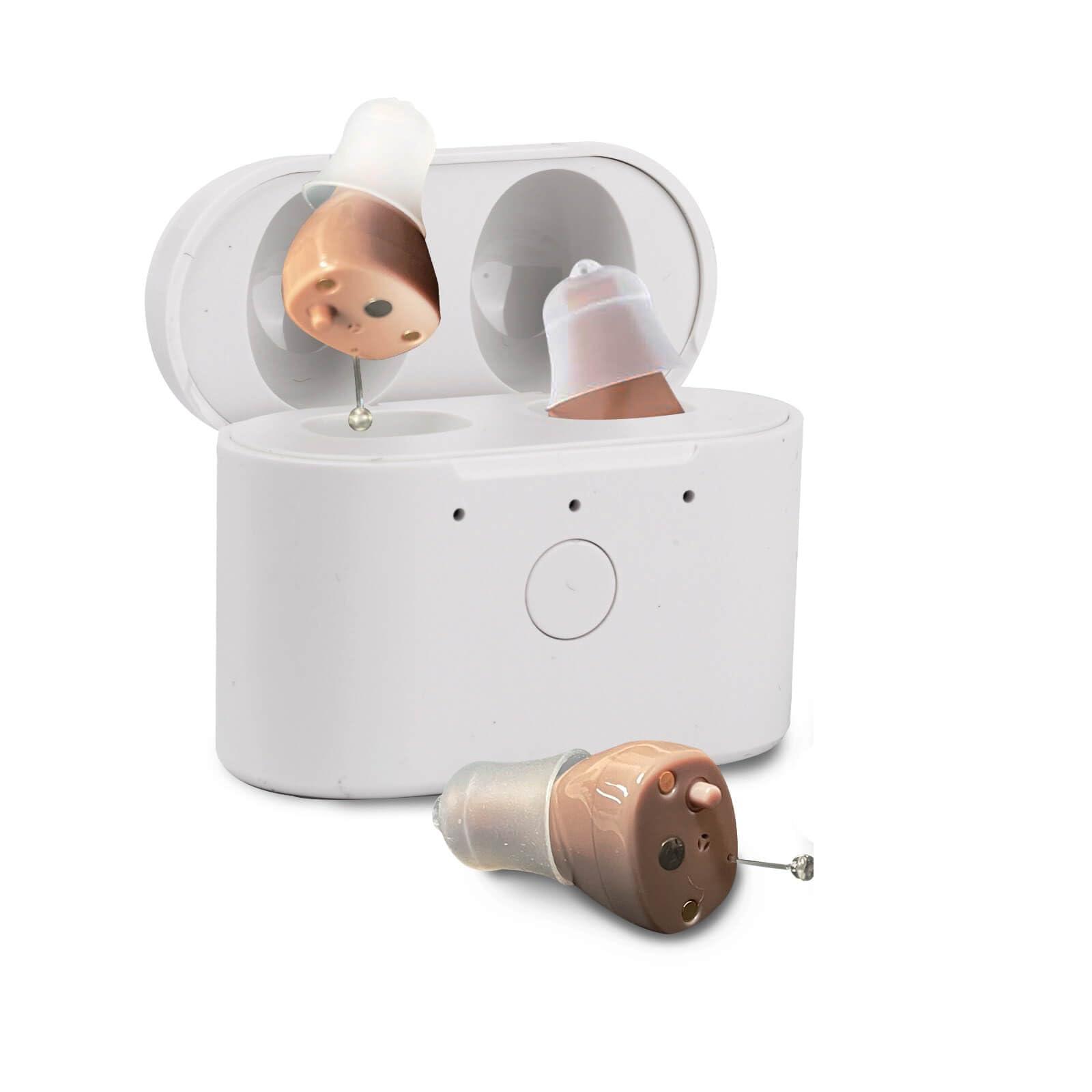 - Rechargeable : These tiny and discreet hearing aids are perfect for people who lead busy lives on the go. With a digital rechargeable battery, The rechargeable mini hearing aids provide 25 hours of listening time on a single charge and extend to a total of 125 hours with the compact USB-C charging case. , making them ideal for long days at work, travel, or social events.