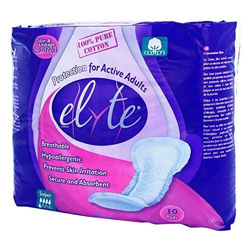 Elyte brand incontinence pads are made in Italy by Corman, the only manufacturer in the world to produce a line of 100 percent pure, natural cotton core incontinence products. The pads for light to medium incontinence help prevent and alleviate skin irritation and rashes which may occur from using traditional retail pads made from paper based materials with chlorine-bleach. Features Corman's patented micro-encapsulation technology to absorb urine and odors while letting your skin breathe. (120 count, 4 bags of 30 pads)