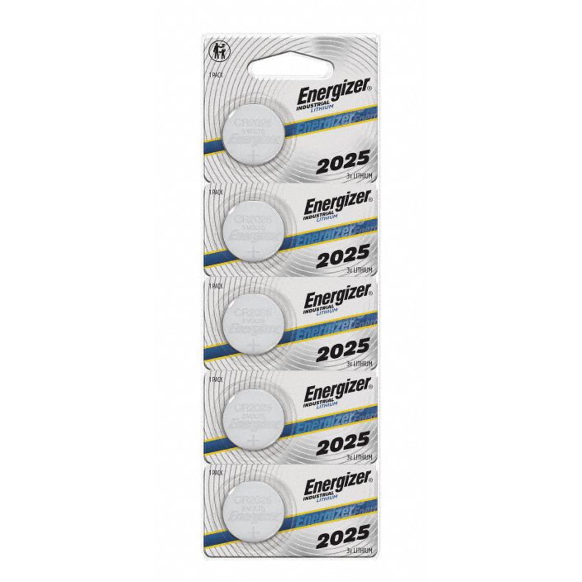 Pack of 5 Energizer CR2025 Lithium Batteries Coin Cell Battery, Battery Size 2025, Battery Chemistry Lithium, Voltage - Batteries 3V DC, Standard Battery Pack Size 5, Capacity - Batteries 170 mAh, Battery Cross-Reference 280-205, CR2025, DL2025, E-CR2025, ECR2025, KECR2025-1, NA, SB-T14, Drain Type - Battery High Drain, Diameter 0.782 in, Depth 0.092 in, Max. Operating Temp. 140 Degrees F, Min. Operating Temp. -22 Degrees F, Standards ANSI, Color Code No Code