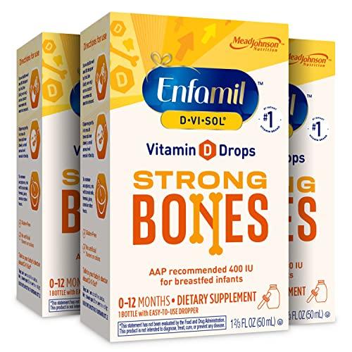 Enfamil D-Vi-Sol infant vitamin D drops have Vitamin D to help your babys body absorb calcium for strong bone and teeth development*. One serving contains 100% of the daily value of Vitamin D for breastfed infants from 0-12 months as recommended by the American Academy of Pediatrics (AAP). The AAP recommends 400 International Units (IU) of vitamin D daily beginning the first few days of life for breastfed or partially breastfed infants, or infants who receive less than one liter or one quart of vitamin-D fortified formula daily. Enfamil D-Vi-Sol is naturally flavored and does not have ingredients derived from the most common food allergies. Enfamil vitamins are the #1 infant vitamin brand and the #1 recommended infant vitamin brand by pediatricians. The standard serving for Enfamil D-Vi-Sol is 1 milliliter (mL) per day. *This statement has not been evaluated by the Food and Drug Administration. This product is not intended to diagnose, treat, cure, or prevent disease.