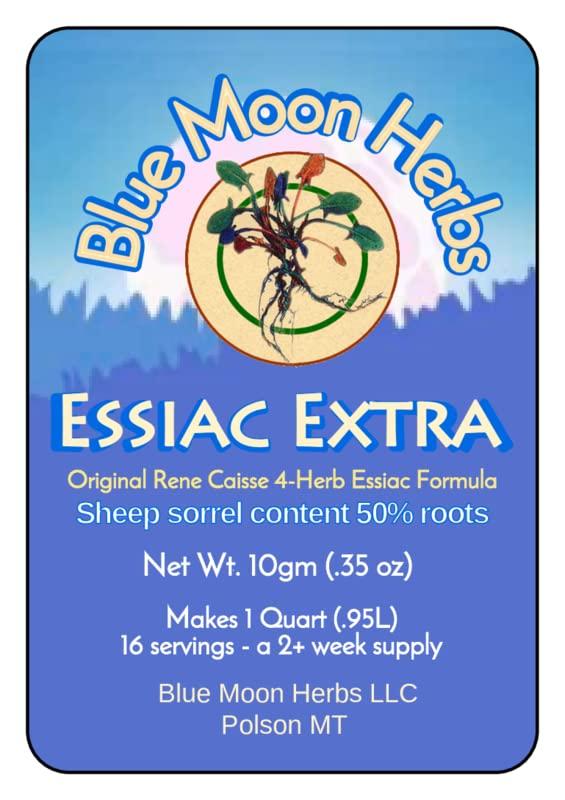 Blue Moon Herbs specializes in Essiac Herbal Tea, made like it was made almost 100 years ago. We follow the public domain formula and include Sheep sorrel roots in our Essiac, the 'secret" ingredient that Essiac's developer Canadian nurse Rene Caisse included. Most Essiac on the market today does not contain any Sheep sorrel roots, it only contains the flowers and aerial parts. Blue Moon Herbs goes the extra mile to include Sheep sorrel roots. The ratio in most of our Essiac mixes is now a minimum of 40% roots. Essiac Extra now contains 65% roots as of December 2022! The most potent Essiac on the market.