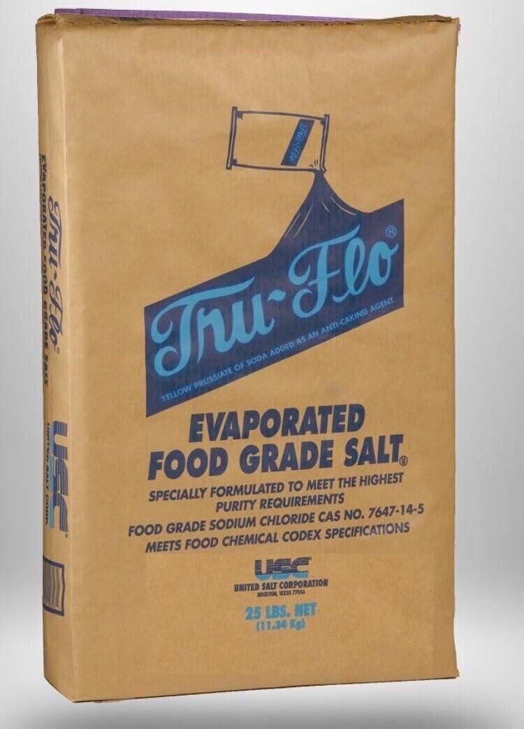 Evaporated food-grade salt is high purity salt used in food processing and for human consumption. It has a broad spectrum of uses ranging from cooking and cleaning, curring and brining meats, to pickling veggies and rimming cocktail glasses. When purchased in bulk, the cost for volume is less, you purchase less frequently and you have plenty on hand for a multitude of needs and purposes. Tru-Flo Evaporated Food Grade Salt is more than 99.9% pure sodium chloride and contains less than .0013% of Yellow Prussiate of Soda (added as an anti-caking agent). Uniform in crystal size, evaporated food-grade salt is fast dissolving, and produces a clear brine. This granulated salt is ready for daily kitchen use in shakers, seasoning, sauting, baking, and more.