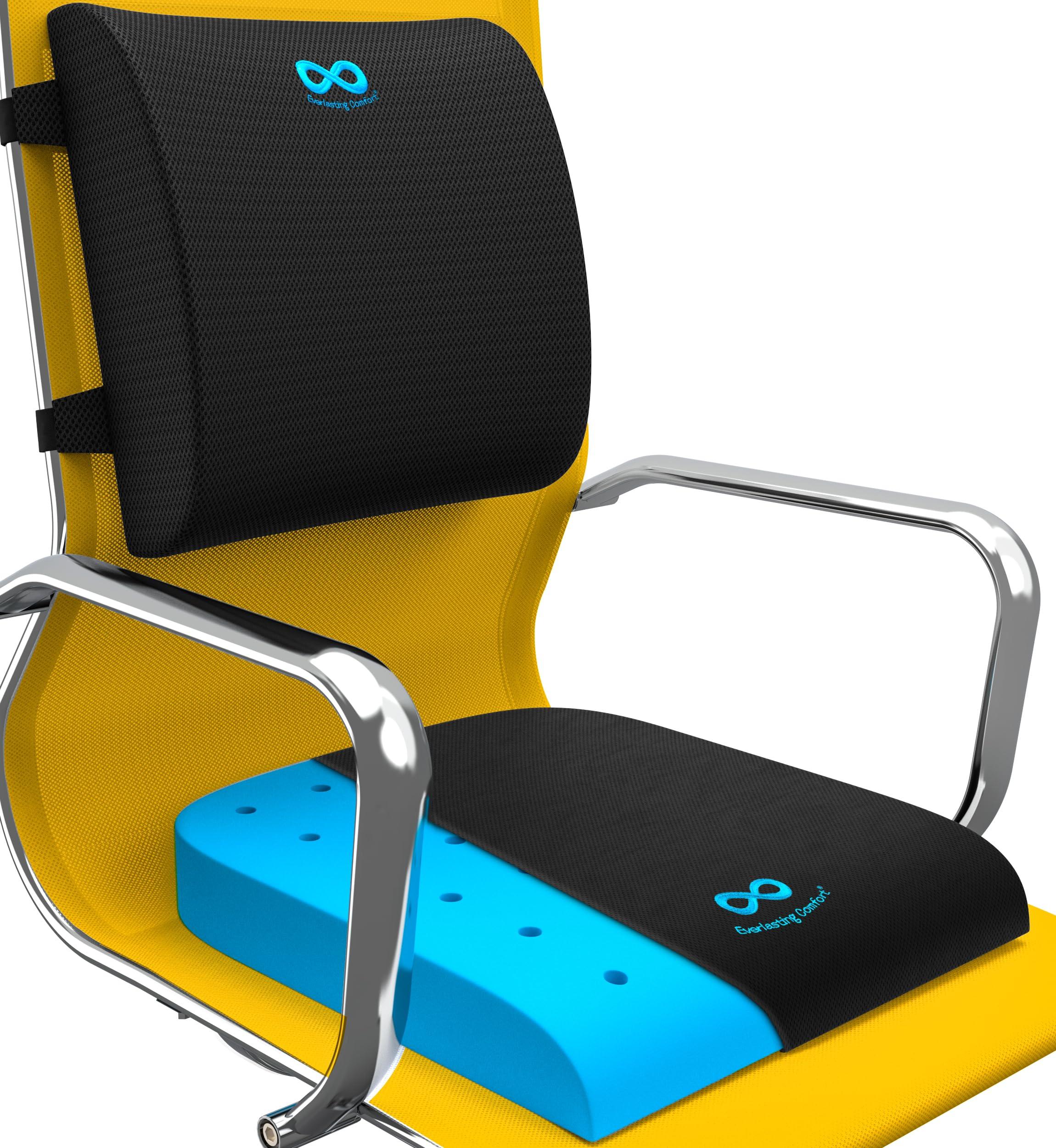 Everlasting Comfort Pure Memory Foam Wheelchair Seat Cushion and Lumbar Support Pillow for Office Chair Bundle
