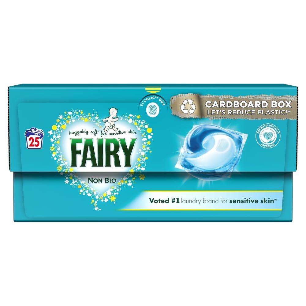 - Discover The Gentle Care Of Fairy Non Bio Pods Washing Liquid Capsules With The Best Softness Fairy Non Bio Has To Offer. Fairy Non Bio Pods Washing Tablets Box Can Now Help Reduce Plastic Thanks To Their Recyclable Ecoclic Cardboard Box It Only Contains Maximum 5 Plastic Designed To Preserve Your Pods And With A Child Safe System To Keep Them Safe From Children.
