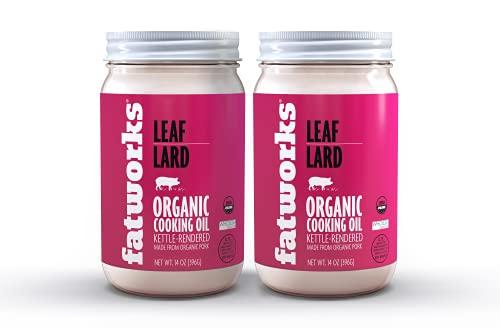 Fatworks, Certified Organic Leaf Lard, NON-GMO, USDA 100% Organic for Amazing Traditional Baking, Keto, Paleo, Everyday Cooking and Frying, Whole30 Approved, No Preservatives in Glass Jar, 14 OZ,