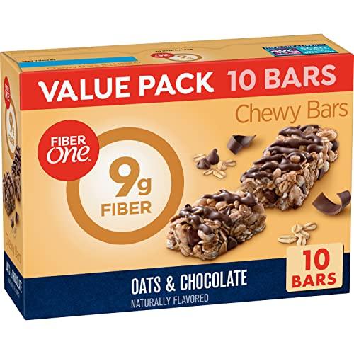 Hearty whole oats topped with a smooth chocolaty drizzle and delicious chocolate chips, Fiber One Oats & Chocolate Chewy Granola Bars provide an indulgent snack without any of the guilt. Rich chocolate chips and hearty oats help satisfy your cravings without sacrificing your healthy lifestyle. Each fiber bar contains at least 35% daily value of fiber so you'll feel like one smart cookie when you say 'yes' to your sweet tooth. Diets high in fiber can help keep your digestive system on track. Choose Fiber One Chewy Barrs for your breakfast bars, office snacks or as an on-the-go treat. Contains 10 bars total.