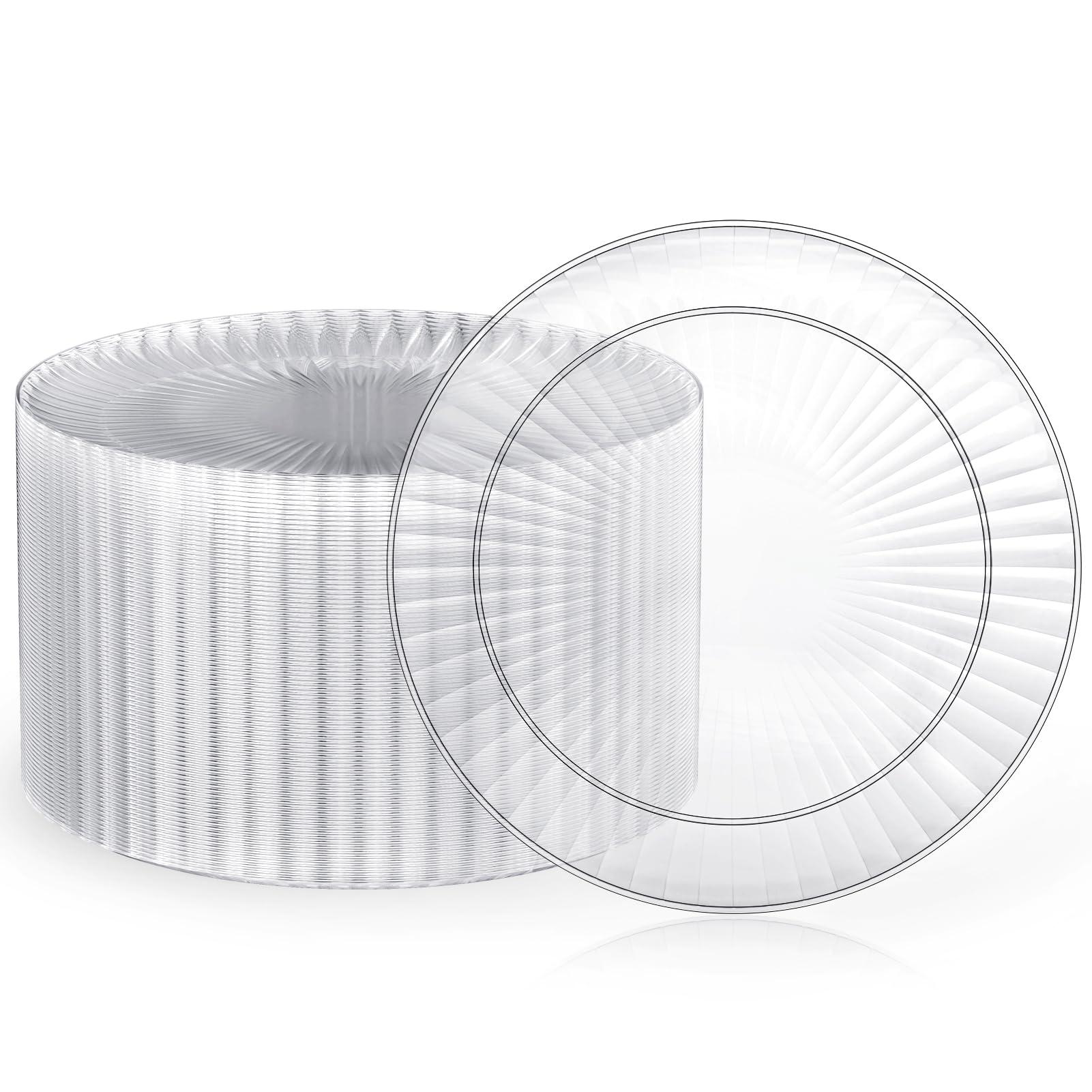 - Elegant & Stylish: Our 10 inch clear dinner plates showcase a sleek design with subtle lines on a smooth surface, giving them a luxurious feel. The crystal clear construction is designed to better showcase a variety of colorful dishes such as appetizers, cakes, and gourmet salads.