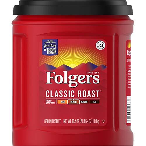 - Contains 1 - 38.4 Ounce AromaSeal Canister of Folgers Classic Roast Ground Coffee