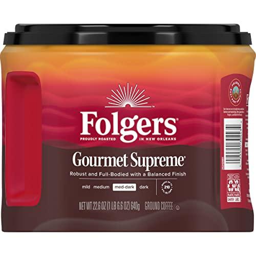 If you enjoy the rich and flavorful depth of a medium dark roast coffee, Folgers Gourmet Supreme ground coffee is just what you need to start the day right. Carefully crafted by our expert Roast Masters, this supremely delicious coffee features a blend of robust and full-bodied flavors youre sure to love. Brew it your way using the home coffee maker of your choice. (Tip: Folgers Gourmet Supreme ground coffee is especially well-suited for cold brewing or for use in a French press.) Its The Best Part of Wakin Up, with a special twist. Stock up now to elevate your every day.