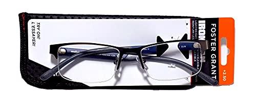 FosterGrant Ironman IronFlex IM1001 Men's Reading Glasses Semi Rimless Gun (Blue, 1.50)