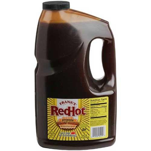 Franks RedHot Stingin Honey Garlic Hot Sauce, 1 Gallon -- 2 per case. The classic taste of honey garlic sauce kicked up a notch with spicy cayenne pepper. Franks RedHot Stingin Honey Garlic Sauce is great for tossing on Wings and Ribs or dipping in Chicken Fingers and French Fries.Free From High Fructose Corn Syrup. Country of Origin: United States, Kosher
