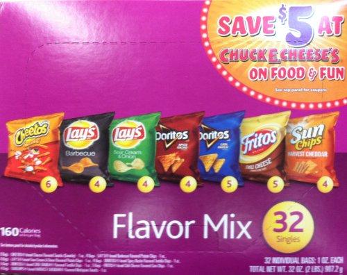 Convenient multi-flavored chips -- favorite flavors from Frito Lay -- all combined in one unit! Enough selection to satisfy all of the favorite tastes in your home. Easy snacks to take to work, school, or on the road!