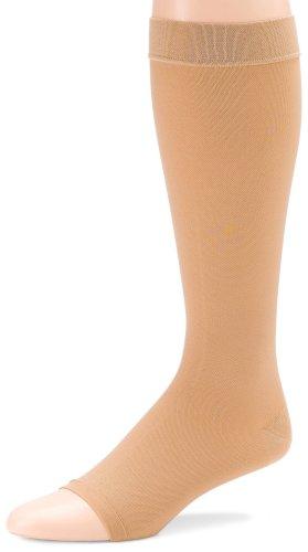 20-30 mm/Hg Graduated Compression Hosiery (The means compression for an average ankle size). Doctor Recommended for: Tired, achy legs; Pronounced varicose veins. Futuro firm compression knee high stockings provide extra support for those people with chronic fatigue and uncomfortable leg conditions. These conditions may include tired, swollen, or achy legs and ankles, pronounced leg swelling after cast removal, severe varicose veins during pregnancy, post phlebitic syndrome, and reversible lymphedema. Always consult your physician first. Futuro firm compression knee high stockings offer support through the use of graduated compression, which means that the compression is greatest at the ankle and gradually decreases up the leg. Graduated compression is designed to accelerate movement of blood through the veins towards the heart, which means better circulation and increased comfort.