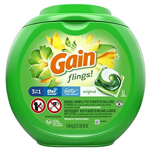 Gain, Flings Liquid Laundry Detergent Pacs Original, 51 Count