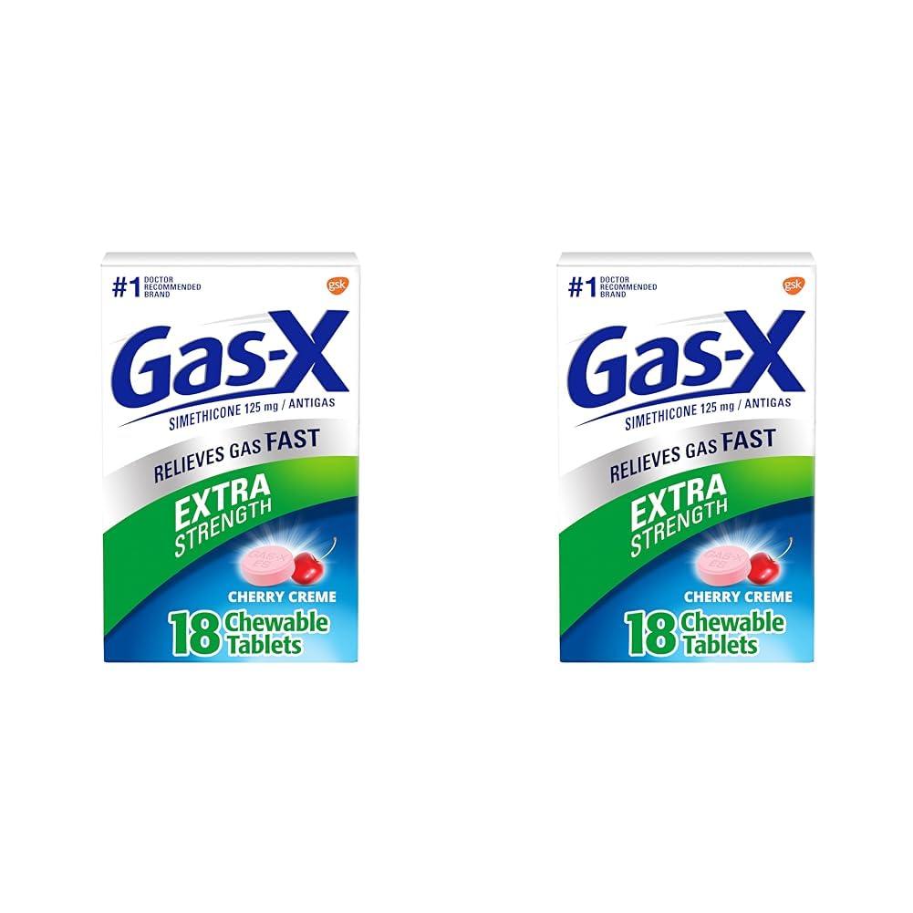 From the number 1 Anti-Gas Relief Brand comes Gas-X Extra Strength Chewable Gas Relief Tablets with Simethicone 125 mg deliver fast relief of gas pressure, bloating and discomfort. These chewable tablets go to work in minutes, rescuing you from embarrassing situations and helping you get back to feeling like yourself. Gas-X uses 125 mg simethicone to break up gas bubbles in your stomach and intestines. Once this trapped gas is broken down, your body can deal with the gas properly. These portable and easy to take simethicone chewable tablets come in tasty cherry flavor. Adults and children 12 years of age and older may chew one or two antigas chewables as needed, not to exceed four gas tablets in 24 hours unless directed by a doctor. Gas-X is the name you turn to when you need serious gas relief. Trust Gas-X, the number 1 doctor recommended OTC anti-gas product.* *ProVoice Survey fielded from March 1, 2020 to February 28, 2021, and recording recommendations for OTC Anti-Gas products