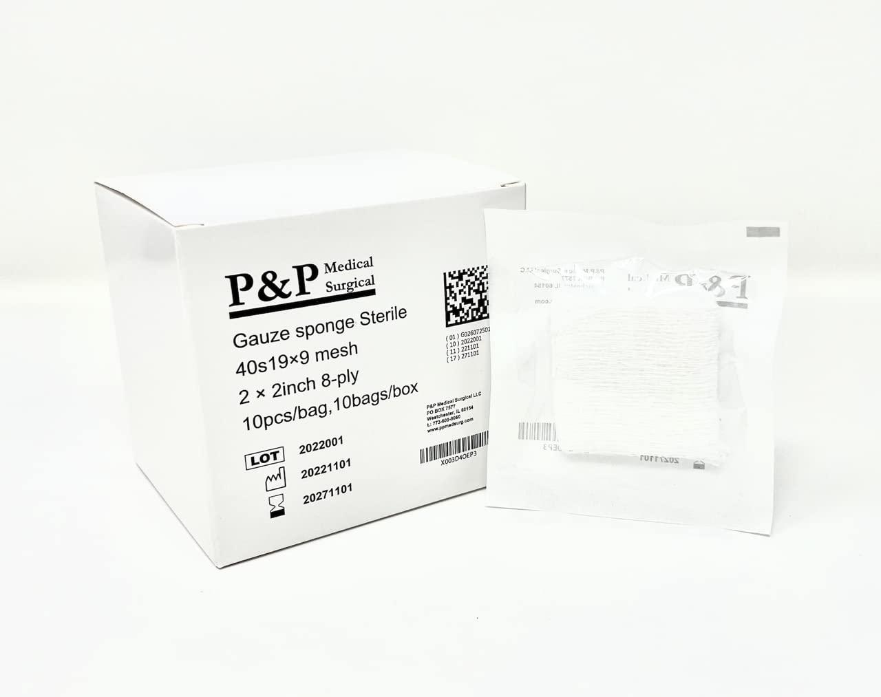 - 100 Gauze Surgical Sponges Cotton Sterile Woven 8-ply High Grade Quality Class I(a) All Purpose Pads Size: 2"x2"