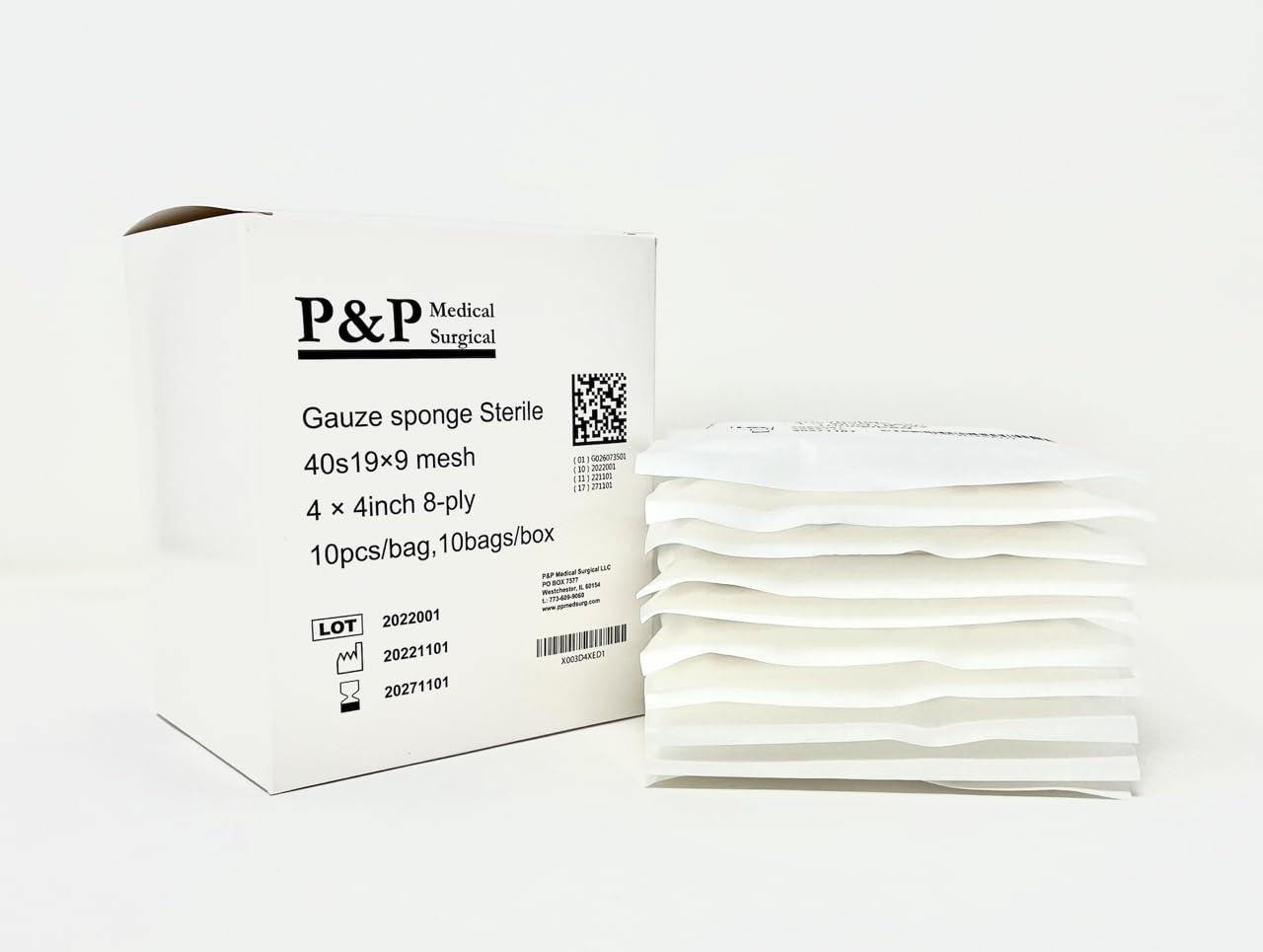 - 1000 Gauze Surgical Sponges Cotton Sterile Woven 8-ply High Grade Quality Class I(a) All Purpose Pads Size: 4"x4"
