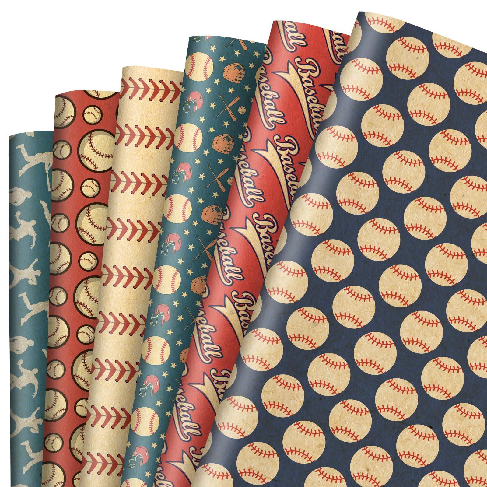 - DELICATE DESIGN: Our wrapping papers are designed with baseball, helmet, the word of Baseball and other patterns, mainly colored in red and blue, attractive and vintage, wonderful supplies for gift wrapping.