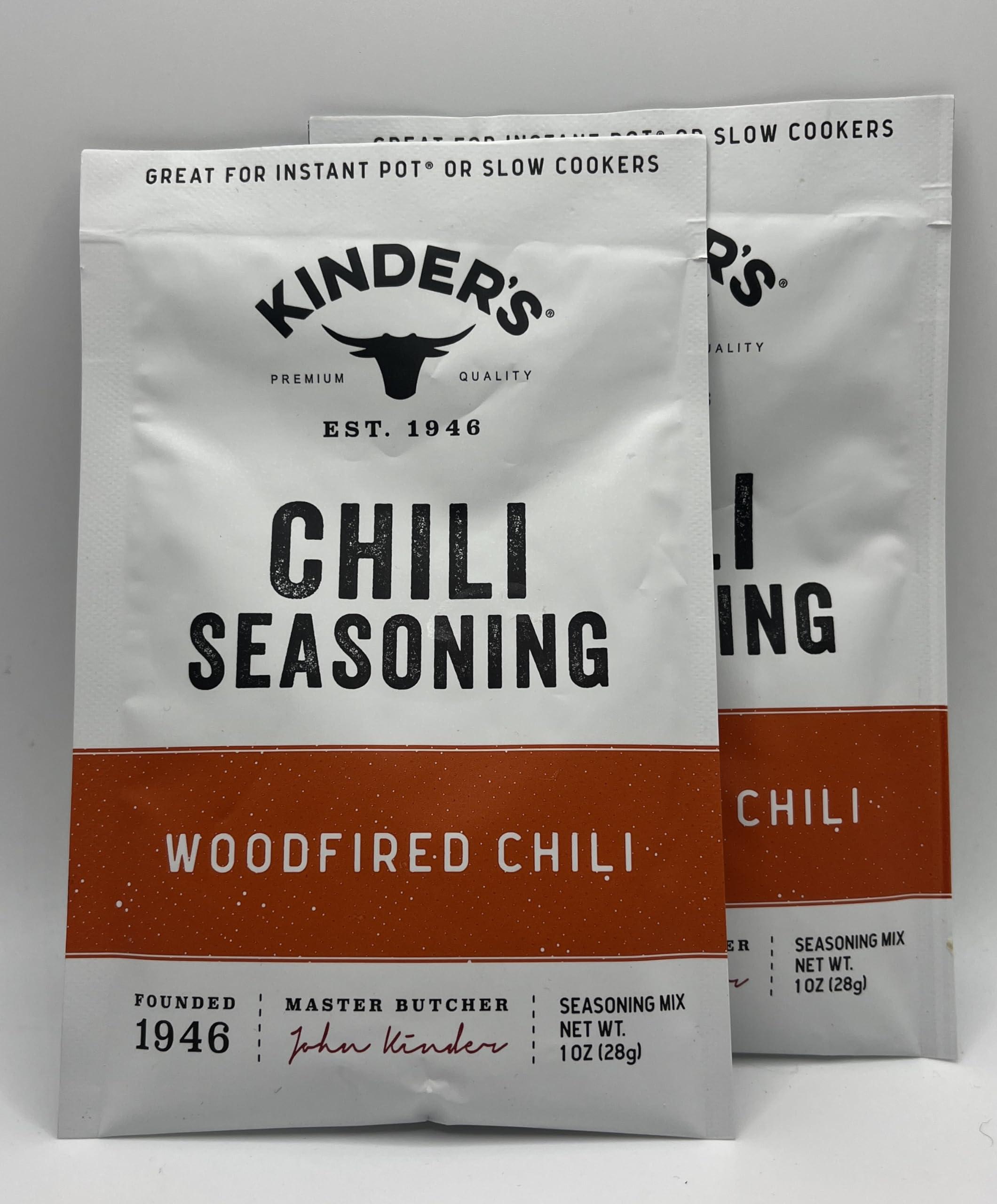 Kinders Woodfired Chili Mix is a one ounce dry seasoning packet. Add Woodfired Chili Mix to add the perfect flavor to a variety of crock pots and Instant Pot recipes, including chili soups, stews, rice dishes and beans cruisine etc! This smoky chili mix is great seasoning for elevating a meal or your next sporting event. Smoky flavor favorite chili recipes Woodfired Chili mix for chili, meat, veggies, etc Great for Crock pots and slow cookers and instant pot Ideal for chili cook outs, game nights with friends, family parties, and celebrations Packet is convenient, 1-ounce mix