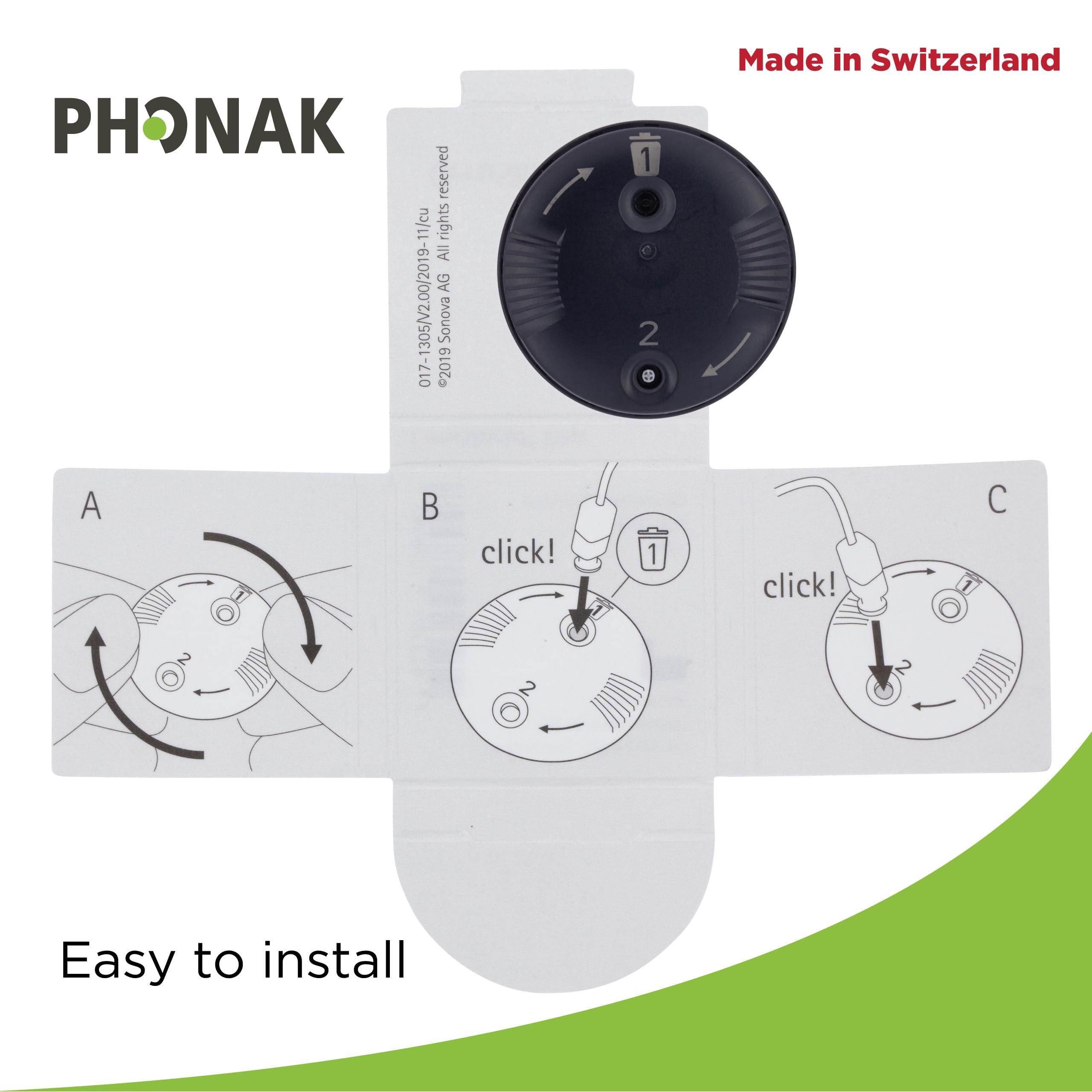 - IMPORTANT NOTICE: Please only shop with Amazon Prime and not with other Chinese sellers to ensure that you get Switzerland by Sonova products listed in the ad. - RELIABILITY AND QUALITY - If you use these Genuine Switzerland, OEM Phonak CeruShield Wax Guards Disk Filters and change them frequently, you will not lose sound. OEM Phonak CeruShield Wax Guard Disk Filter developed by hearing aid manufacturer Phonak to achieve the best sound quality.