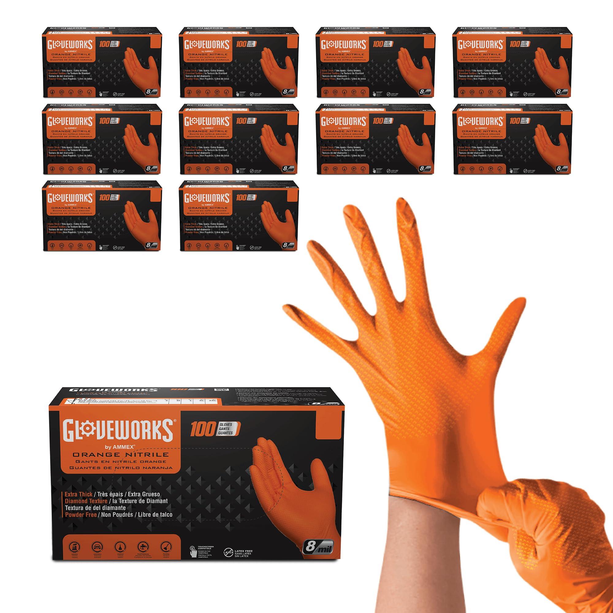 - UNBEATABLE GRIP: 8 mil GLOVEWORKS nitrile gloves feature a raised diamond texture which effectively channels away liquids provding a dependable grip on tools and small objects, even when wet.