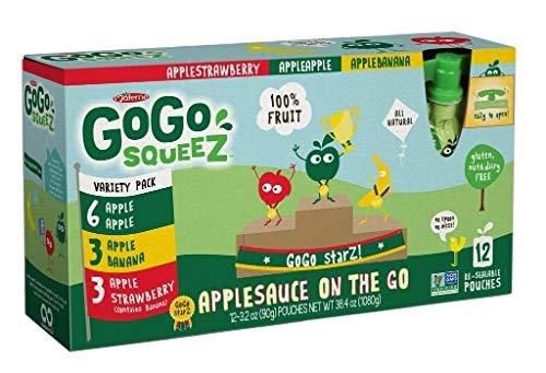 GoGo SqueeZ Variety Pack On the Go Apple Sauce, 3.2 Ounce -- 72 per case. 100 Percent natural, healthy snacking All GoGo squeeZ products are made with nothing but goodness inside. Thats Goodness on the Go! 6 Apple Apple, 3 Apple Banana, 3 Apple Strawberry, Kosher