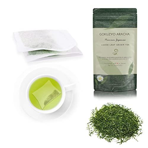 Indulge in the balanced aroma of our Japanese tea selection and let yourself carried away by tranquility and peace! This premium bundle comes with the Eco-friendly loose tea leaves tea bags and signature Gokuzyo Aracha Premium Tea (2-times Global Tea Champion Winner) that will delight your taste buds and offer the calm you need to escape routine life. Made with natural, single-origin green tea leaves, our tea is packed with antioxidants and nutrients without any sugar, GMOs, or fillers. Our tea filter bags have a specialized design. They are oversized with a widened bottom to allow your tea leaves to unfurl fully so that they can give out the maximum flavor and aroma.