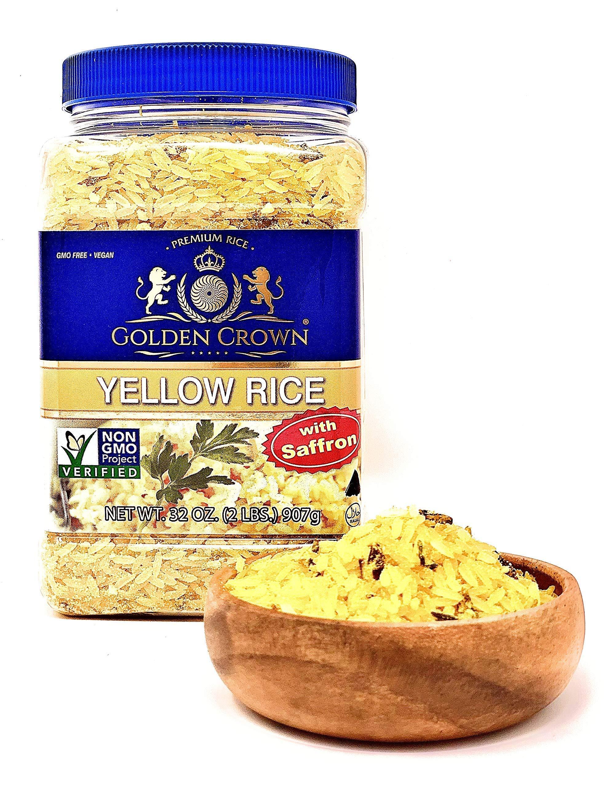 - PACKAGE INFORMATION: You will get a jar full of rice Saffron. The long jar weighs 32 Oz. These saffron yellow rice are a best option for a good family dinner or lunch. The best thing is, these saffron rice yellow are GMO free which means they have certain health benefits.