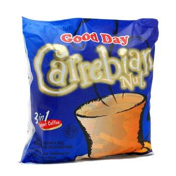 Good Day Carrebian Nut Enjoyment of unique sensation with a touch of hazelnut coffee. Ingredients: instant coffee, sugar, cream, hazelnut flavorings. Produced by PT Santos Jaya Abadi. BPOM RI MD 249913093029 Made in Indonesia