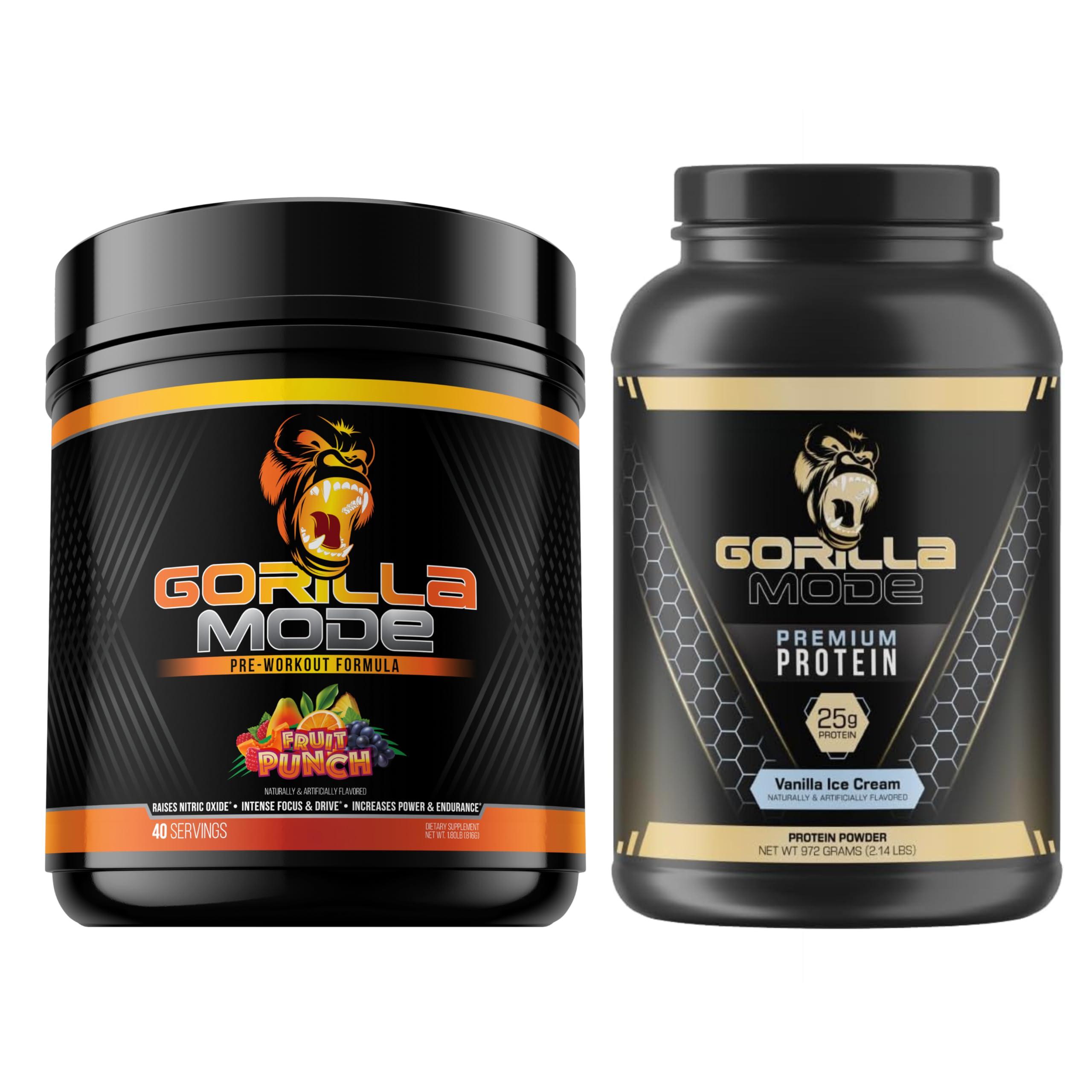 - MODE + PROTEIN: Gorilla Mode + Protein is your comprehensive stack for fueling maximum results from your workouts. Gorilla Mode pushes energy, focus, pump, and performance to the limits intra-workout while Gorilla Mode Premium Protein ensures youre meeting your protein intake, supporting recovery, and augmenting muscle growth potential post-workout.