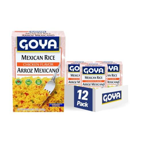 Goya Foods Mexican Rice, Chicken Flavored, 7 Ounce (Pack of 12) | Meat, fish, chicken and vegetable lovers can complement their dishes with this versatile, easy-to-make GOYA Mexican Rice Mix. Its secret blend of whole kernels of corn, bell pepper, onion, garlic and tasty bits of Jalapeo in a mix of Goya Long Grain Rice with chicken flavor goes perfectly with any meal. It can be used as an ingredient in a flavorful main dish or as a tasty side dish. GOYA Yellow Rice Mix is fat free (saturated fat free and trans-fat free) and cholesterol free.