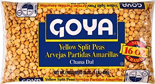 Goya Foods Yellow Split Peas, 16-Ounce (Pack of 24). Beloved in kitchens, GOYA Yellow Split Peas are your go-to for recipes from around the world. They are versatile and have a unique, delicious flavor. NUTRITIOUS | Trans Fat Free, Cholesterol Free and Kosher. High in Protein and Fiber.