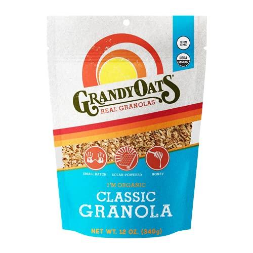 Grandy oats classic granola is loaded with nuts and seeds. This is a great snack and is filled with sustainable ingredients, perfect for fueling your adventures. Recharge on the trail, combine with fresh fruit, yogurt, or enjoy by the handful straight out of the bag. It is made up of all organic, Non-GMO ingredients and has no refined sugar. Only contains 270 calories in every serving. Includes one 12 ounce bag of granola. Our 288 solar panels generate enough clean, renewable energy to produce millions of pounds of granola and offset over 145,000 pounds of greenhouse gases each year. Share your GrandyOats moments!